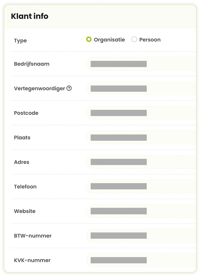 In SolvCRM kun je eenvoudig alle klantinformatie centraal beheren. Van NAW-gegevens en contactinformatie tot belangrijke bedrijfsgegevens zoals btw-nummer en KVK-nummer. Deze gegevens kunnen automatisch op je facturen worden geplaatst wanneer je SolvCRM gebruikt voor je facturatie, wat tijd bespaart en zorgt voor foutloze documenten. Wil je jouw facturatie ook automatiseren? Ontdek hoe SolvCRM jouw facturatie kan stroomlijnen.