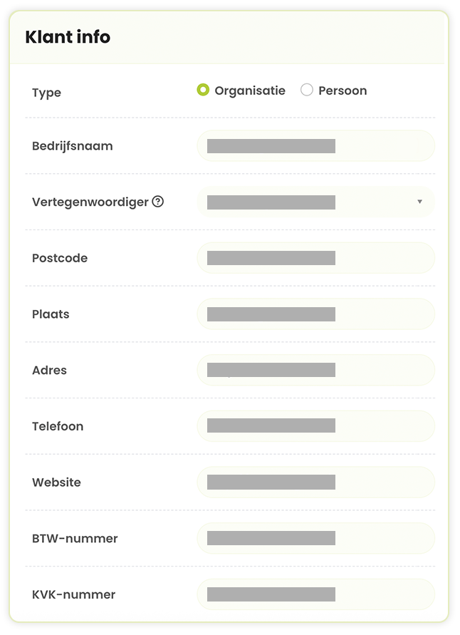 In SolvCRM kun je eenvoudig alle klantinformatie centraal beheren. Van NAW-gegevens en contactinformatie tot belangrijke bedrijfsgegevens zoals btw-nummer en KVK-nummer. Deze gegevens kunnen automatisch op je facturen worden geplaatst wanneer je SolvCRM gebruikt voor je facturatie, wat tijd bespaart en zorgt voor foutloze documenten. Wil je jouw facturatie ook automatiseren? Ontdek hoe SolvCRM jouw facturatie kan stroomlijnen.